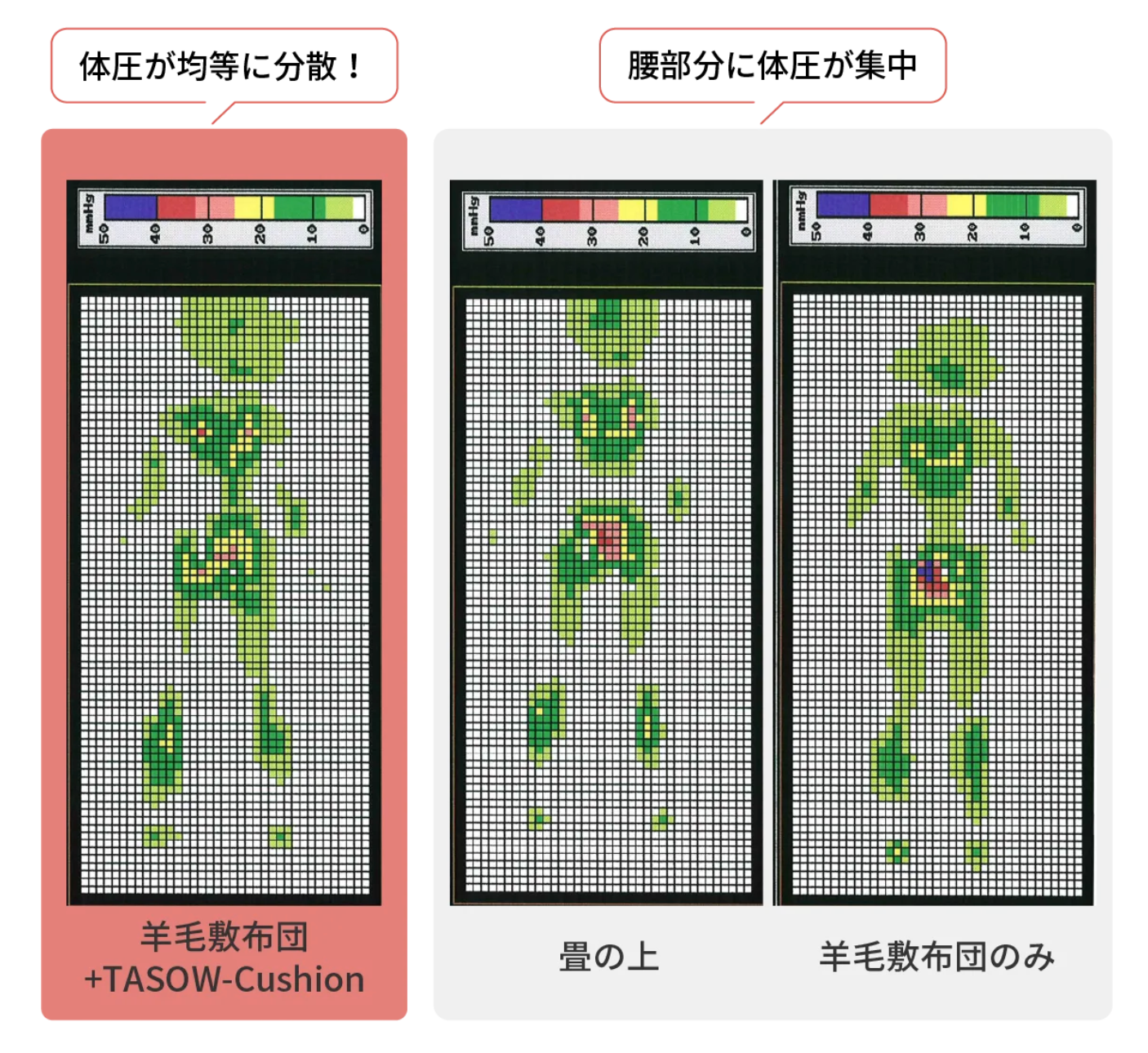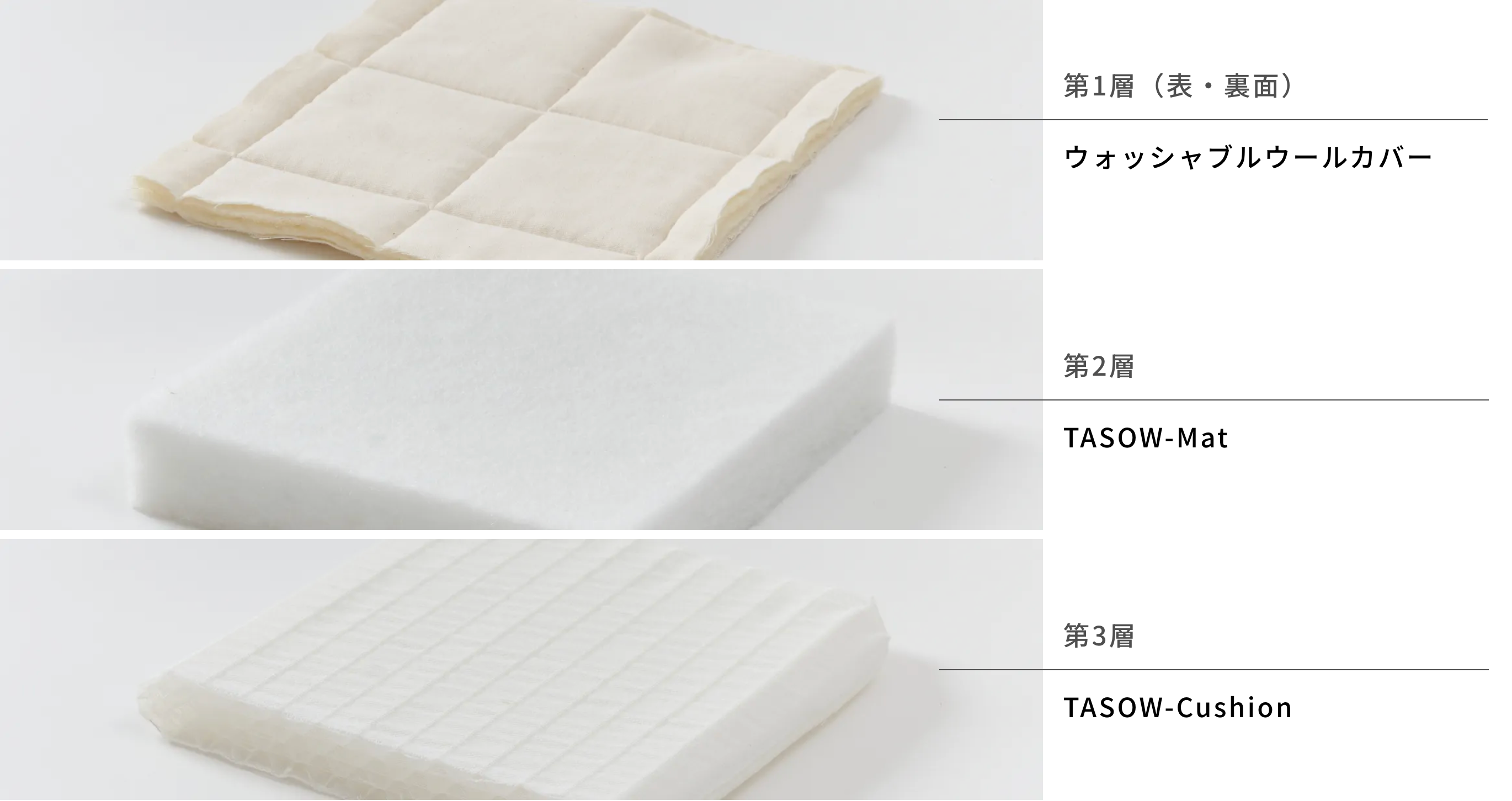TASOW-Cushionは連続アーチ型の空気層を形成、太線度の糸一本一本が荷重物を支えます。